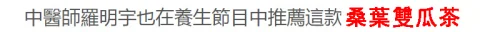 25分鐘前 【台灣熱銷】永康中醫診所【中醫師羅明宇推薦】【三高剋星】【排油減脂】桑葉雙瓜茶每天一杯/降三高/平穩血糖/預防脂肪肝不打針不吃藥,各大權威推薦!以治愈上萬糖友!每天喝,三高穩定,告別三高! - 「養顔抗衰、增強免疫」3入組 -NT$998 (共45包)