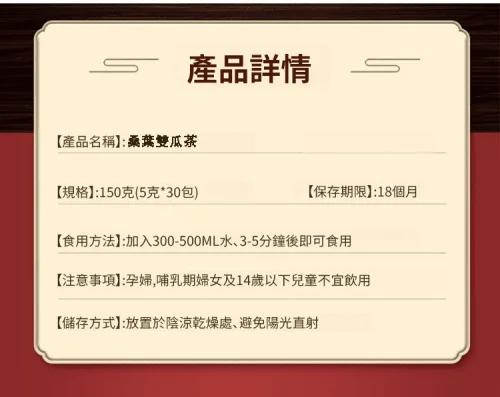 半小時前 【台灣熱銷】永康中醫診所【中醫師羅明宇推薦】【三高剋星】【排油減脂】桑葉雙瓜茶每天一杯/降三高/平穩血糖/預防脂肪肝不打針不吃藥,各大權威推薦!以治愈上萬糖友!每天喝,三高穩定,告別三高! - 「養顔抗衰、增強免疫」3入組 -NT$998 (共45包)